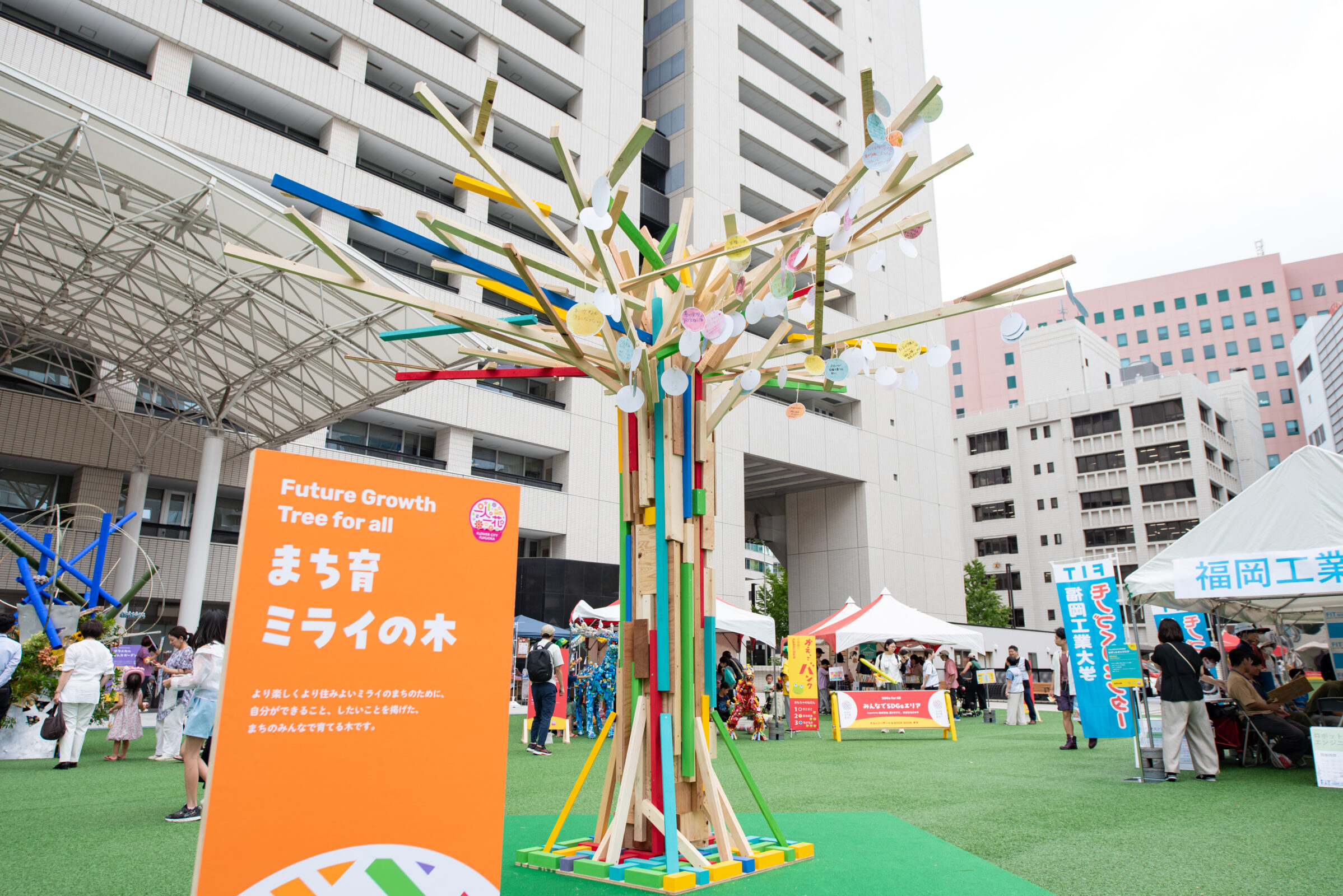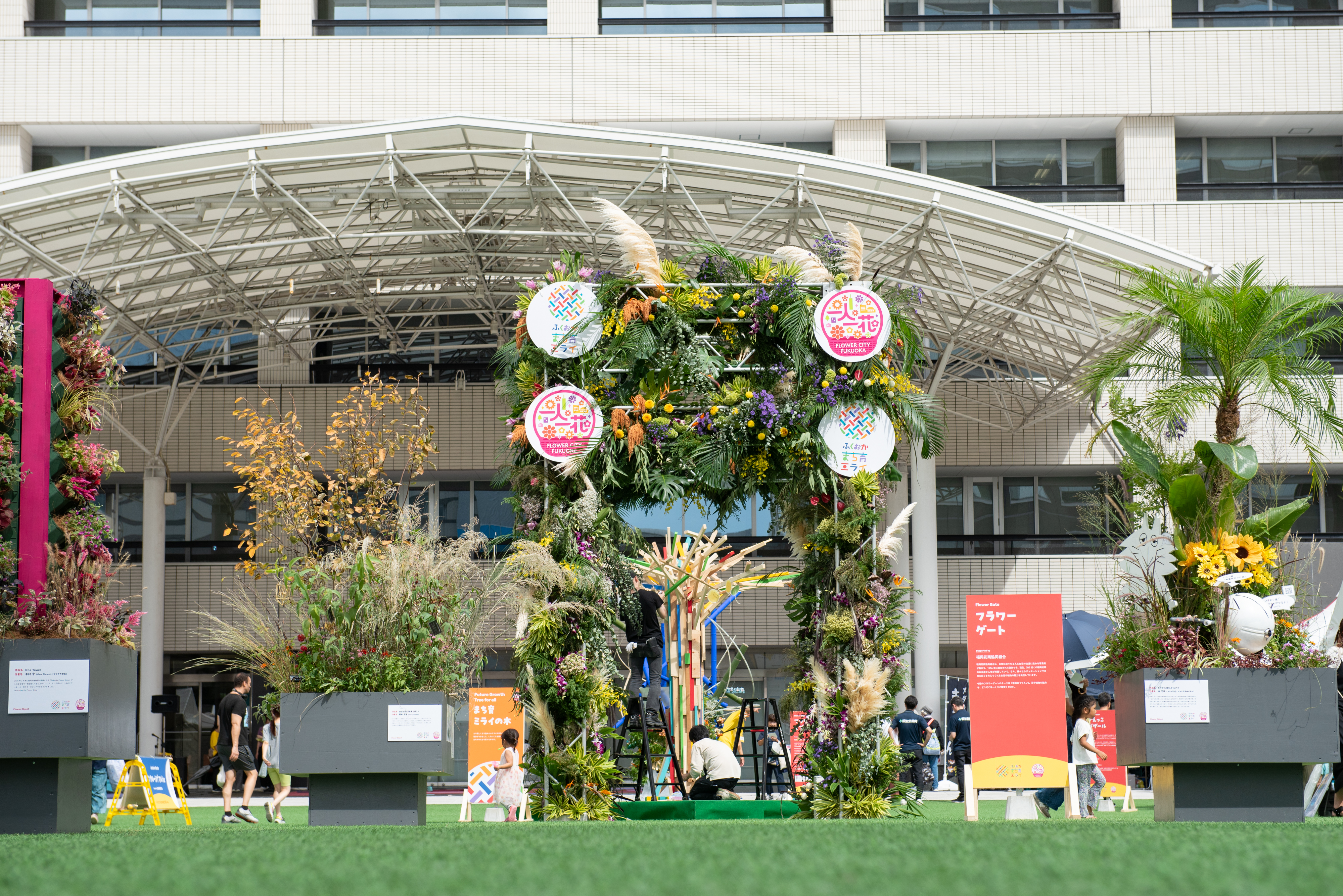 その中でも象徴的な取り組みが、子育て事業と連携したイベント「ふくおかまち育ミライ」です。花や緑にふれながら、子どもたちの未来を考えるきっかけを届けるこのイベントでは、花緑に関わる職業体験やステージ企画、アートやガーデニングの展示など、多彩なプログラムが展開されました。花に込められた想いや美しさが、訪れた人の心を動かし、イベント全体の価値を高めてくれました。