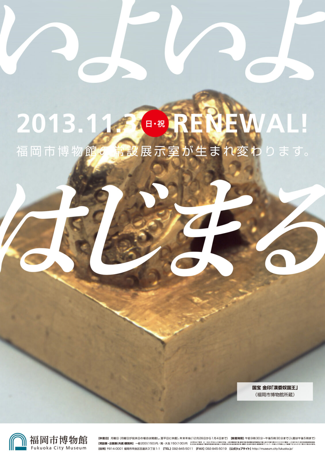 福岡市博物館は、国宝「金印」や黒田家ゆかりの品々をはじめ、多くの福岡市民の皆さんから寄贈・寄託された資料を大切に調査・保管・公開してきたミュージアムです。開館から30年を迎えた頃、太宰府に九州国立博物館が開館し、福岡市美術館も大規模リニューアルに踏み出すなど、周囲の環境が大きく変化するなかで、福岡市博物館も「次の時代の姿」を模索していました。