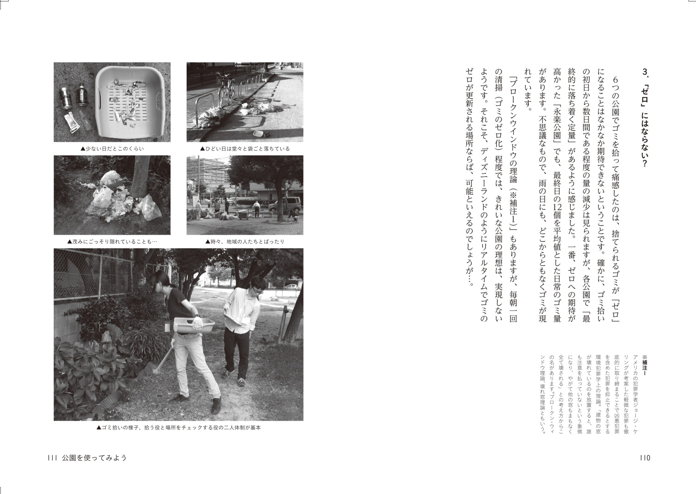 このプロジェクトの経験や、クリエイターたちが自由に描いた「未来の公園」のアイデアを一冊にまとめたのが、『good park ― 住民による活気ある公園づくりの参考書』です。この冊子は全国の自治体やNPOでも高い関心を集め、改訂版も発行され、広く届けられました。