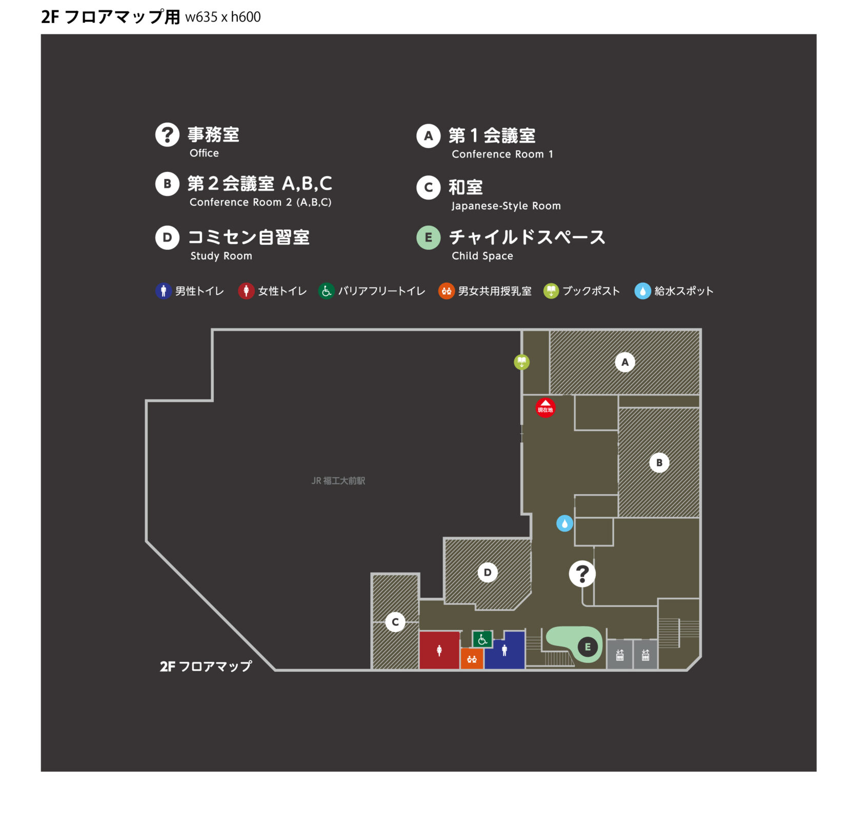 上の事例では、施設内のサインをすべて見直し、「ただ配置がわかる地図」ではなく、「初めて来た人でも直感的にわかるマップ」へと工夫しました。
